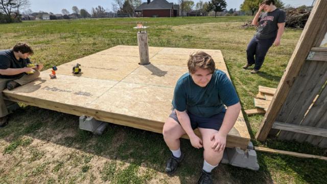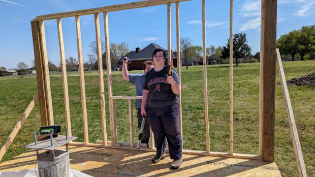 The first wall is up. Only knocked two 2x4s out standing it up. Kaspir is ready to knock out Tyger.